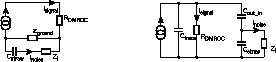 The coupling paths shown in Figure 3.4 translate into three equivalent circuits representing the conductive coupling through the decoupling capacitor CC , the capacitive coupling from straw to straw, straw to wire, and wire to wire (combined in Cwire_wire ), and inductive coupling from wire to wire ( Lwire_wire ) - see Figure 3.5.